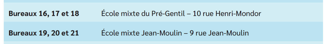 Les bureaux de vote des écoles Jean-Moulin et Pré-Gentil ont été inversés.
