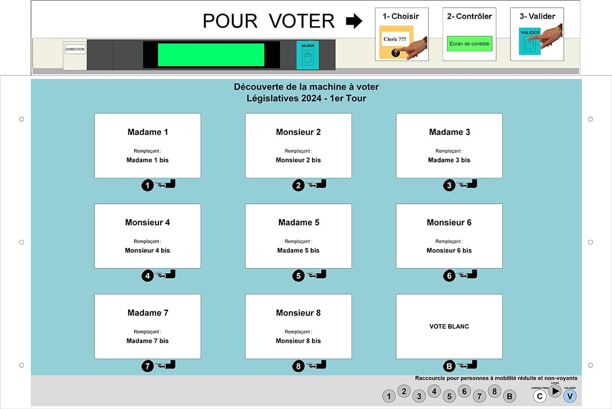 Attention, cette opération ne peut se faire que si vous n’avez pas validé votre vote car le fait d’appuyer sur la touche “validation” équivaut à placer votre enveloppe dans l’urne.