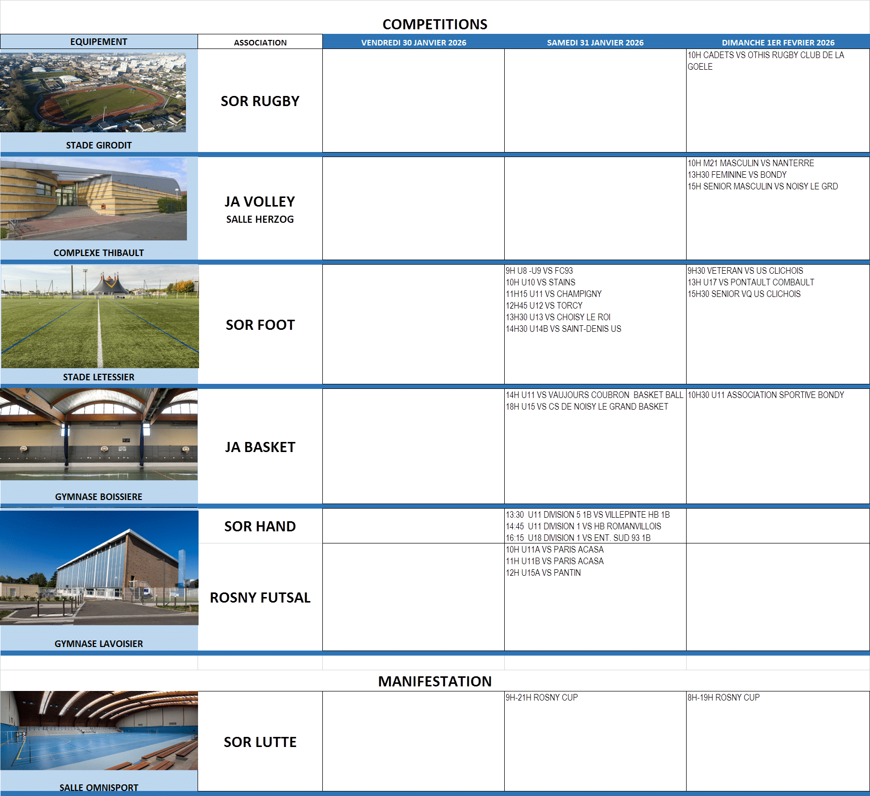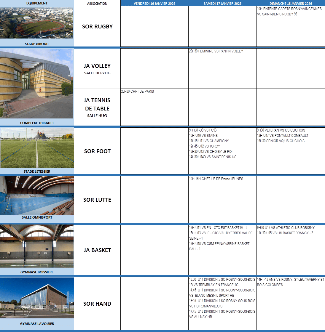 Envie d’aller soutenir nos équipes rosnéennes lors de leurs rencontres, qu’elles soient amicales ou dans le cadre d’un championnat ? Que vous soyez sports collectifs ou individuels, plutôt passes, tirs, mêlées, balayettes ou low kick, vous trouverez certainement votre bonheur de supporter !